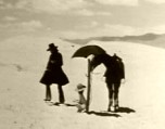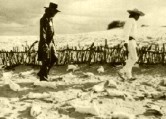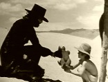 Jodorowsky reitet auf einem schwarzen Pferd durch die Wüste; ein nacktes Kind