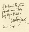 Autogram aktorki na kartce papieru, na wkładce